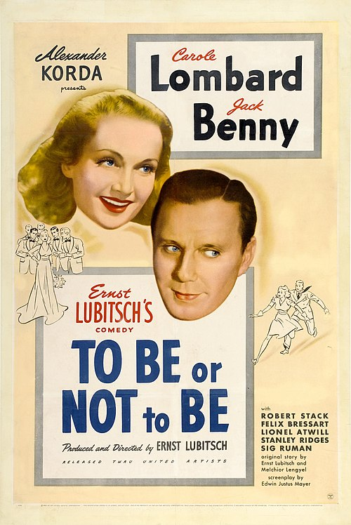 It’s an american black comedy directed by Ernst Lubitsch. It stars Carole Lombard and Jack Benny as Maria and Joseph Tura in a biting satire of the Nazi invasion of Poland and a theater troupe’s rebellion against them. I am happy, I found it on YouTube. Incidentally it was Carol Lombard’s last film, her crashing on an airplane during the movie’s post-production. There is even a rumor that some dialogue of the movie was edited to remove the line “”What can happen on a plane?” out of respect for the circumstances surrounding her death, but that has never been confirmed. Clark Gable never recovered from her death, all quite tragic. I recommend this episode of Star Wars season from the “You Must Remember This” podcast for the whole story.